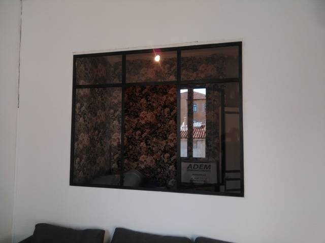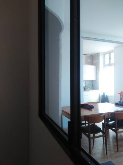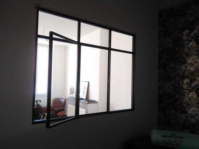 Nos clients souhaitaient créer une ouverture de lumière et d'aération dans une petite pièce jouxtant le salon de leur appartement. Ils ont crée eux même l'ouverture dans le mur, destiné à recevoir notre verrière.