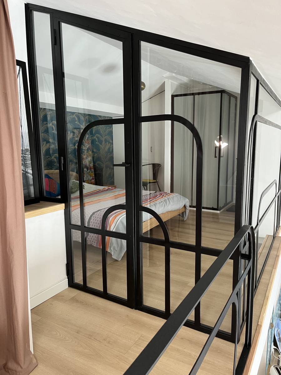 Cette verrière est le fruit de plusieurs années de réflexion, et de nombreux dessins que nous nous sommes échangés avec la propriétaire de cet appartement, dans le centre de Marseille.