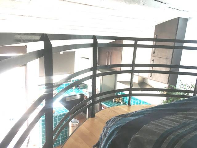 Notre cliente dispose d'une pièce entière sur une mezzanine, fabriquée en grande partie en structure acier. Un garde-corps était déjà présent sur cette mezzanine, mais était rempli par une garniture de bambous qui montaient jusqu'au plafond.
