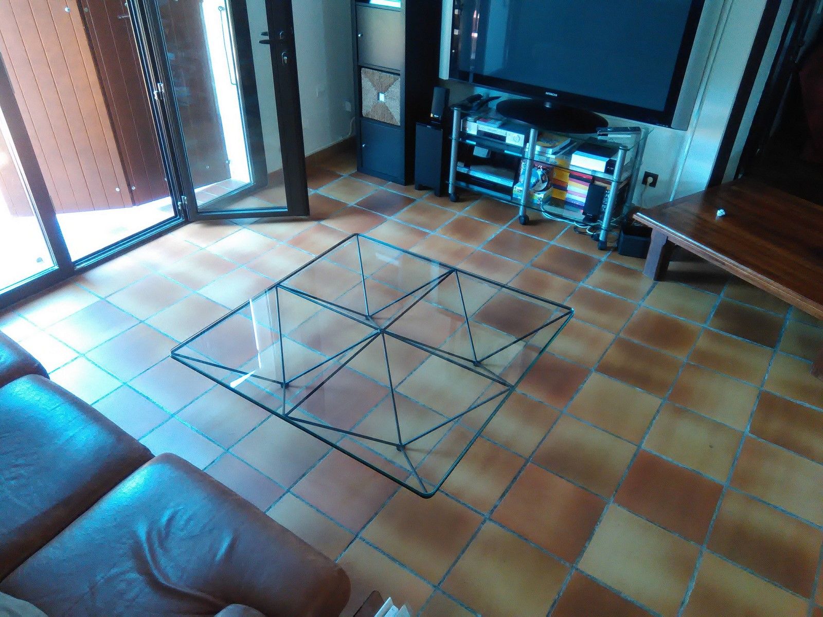 La difficulté résidait dans la rigidité de l'ensemble, avec des matériaux qui devaient rester fins (ronds en acier de 10mm de diamètre). Les pyramides sont donc reliées entre elles par le contour carré de la table et un renfort central, qui permet de rigidifier totalement la table. Cela permet de venir supporter l'imposant plateau en verre de 12mm d'épaisseur. La table est particulièrement stable et lourde, dû au plateau en verre, qui repose sur le cadre en acier. Le contact entre le verre et l'acier est établi avec de petits tampons transparents, quasi invisibles une fois que le poids du verre les compresse.