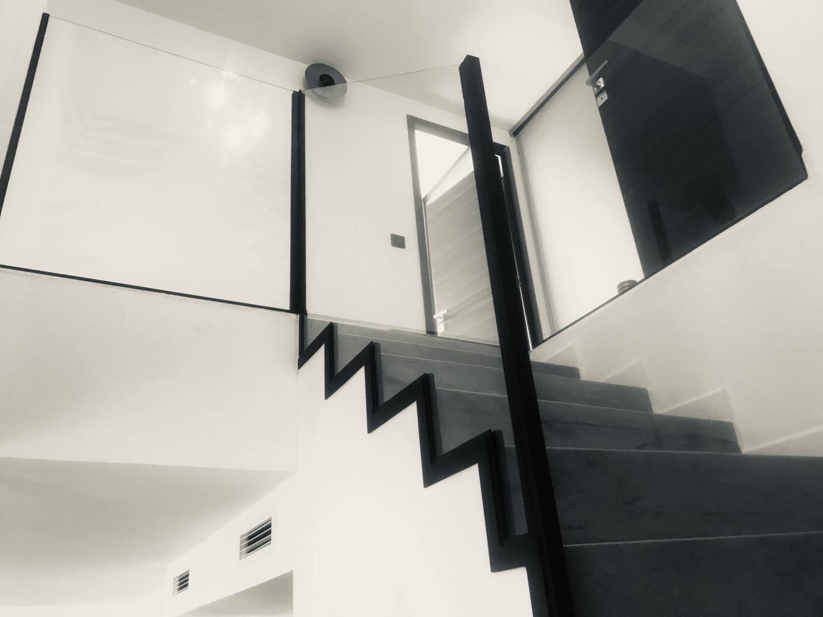 Nous avons fabriqué ces gardes-corps pour des clients qui faisaient construire leur maison, à Allauch. Ces derniers souhaitaient créer des gardes corps et une rampe d'escalier avec un style "verrière moderne". Nous avons dessiné plusieurs projets et sommes tombés d'accord assez rapidement sur ces croquis et le style épuré qui donne un look très moderne à l'ensemble.