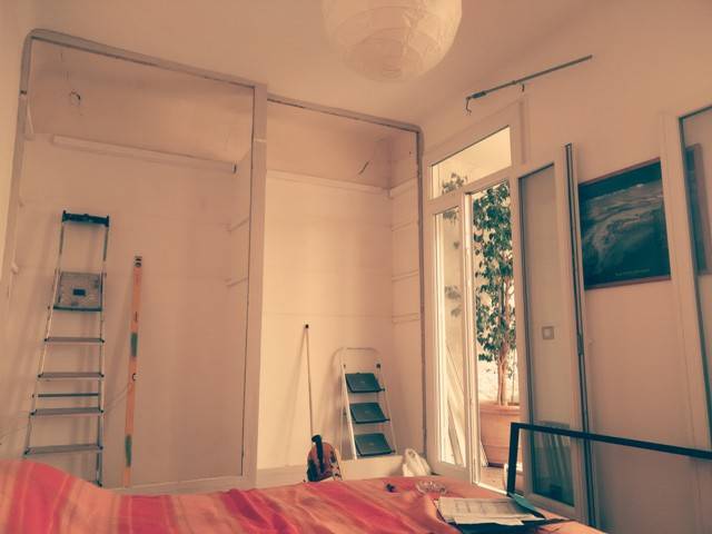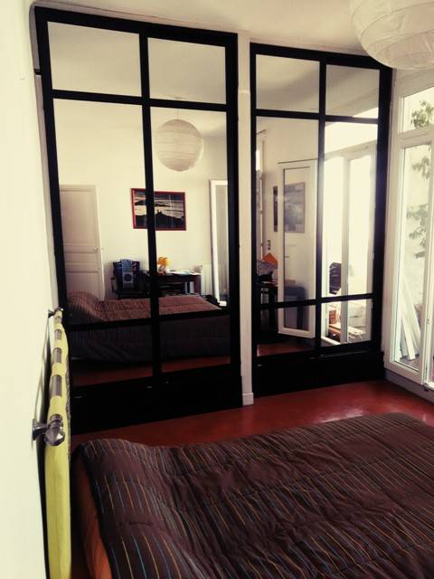 Nous avons posé des miroirs sur toute la hauteur des portes, ce qui apporte une impression de grandeur à la chambre.