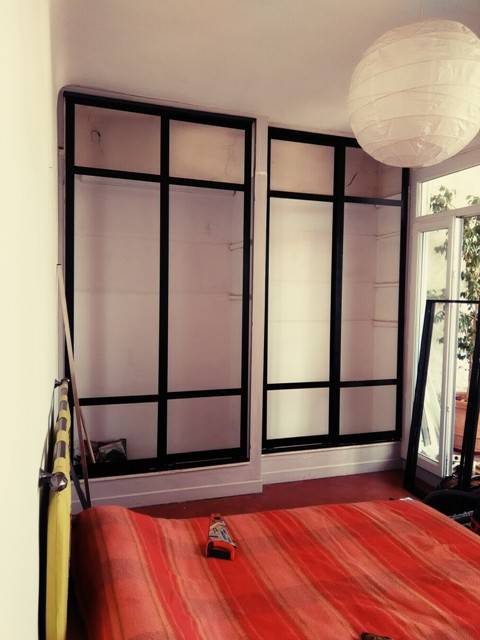 Freestyle Forge a réalisé ces portes de placards coulissantes sur mesure. Nous avons été contacté par un client qui avait une idée précise : remplacer dans sa chambre, les anciennes portes de placard en bois, par de nouvelles portes en acier, coulissantes, et équipées de miroir.