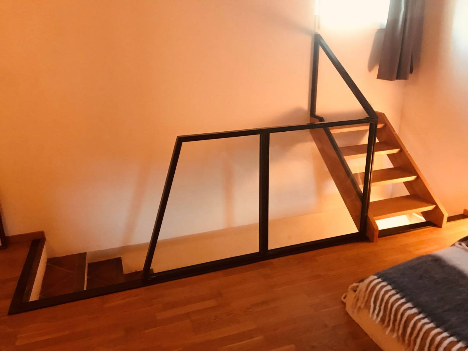 Nous été contacté par notre cliente pour réaliser un garde corps intérieur, qui devait protéger d'un risque de chute le 1er étage de la maison, donnant sur un escalier. Il fallait aussi sécuriser l'accès à une fenêtre qui n'est accessible que par un petit escalier en bois.