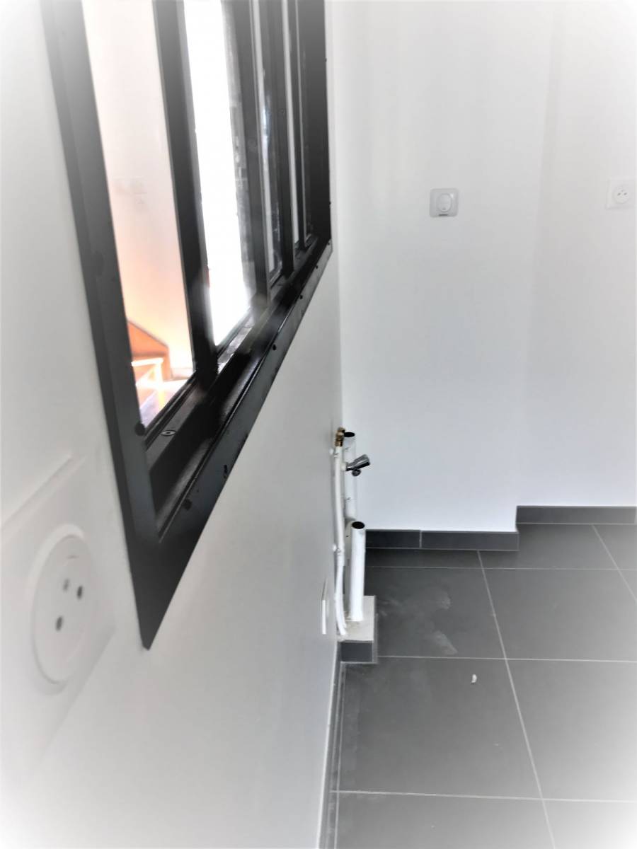 Après en avoir discuté avec le promoteur, nous avons fait ouvrir le mur aux dimensions souhaitées par notre cliente. La hauteur de l'ouverture par rapport au sol avait déterminé en amont avec le cuisiniste. En effet, il fallait que le bas de la verrière coïncide avec le haut de la crédence de la cuisine, à 2 ou 3 mm prêt, alors que le sol de la cuisine n'était pas encore posé.